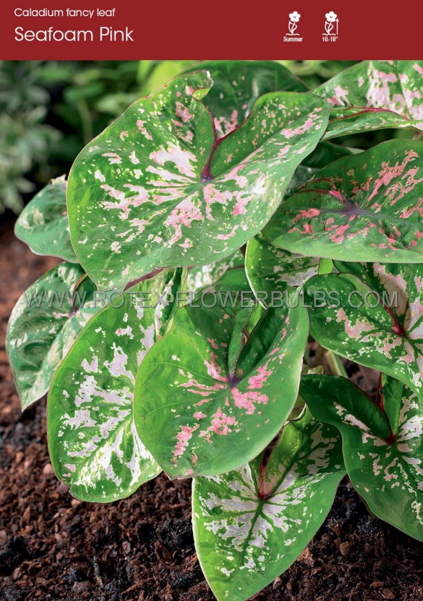 Caladium Fancy Leaved ‘Seafoam Pink‘ Jumbo (100 p.Carton)
